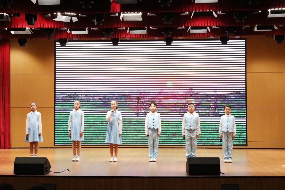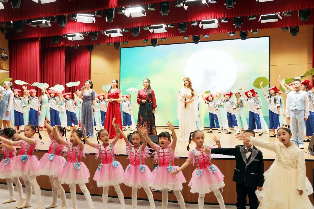 舞台的节奏在动静之间自如切换,三水科创实验学校与三水高新区第一小学联袂呈现的古筝合奏《玉盘》,琴声清越动人,意境空灵雅致;三水科创实验学校的舞蹈《荷叶》以轻盈舞姿展现自然之美,充满诗意;南边小学与小星星实验幼儿园等单位带来的配乐朗诵与快板《乐平新赋》,以铿锵有力的节奏描绘乐平发展风貌;三水高新区第一小学、三水科创实验学校合作的舞蹈《妹仔跳花棚》则俏皮灵动,将非遗文化与童真结合,展现本土文化魅力。