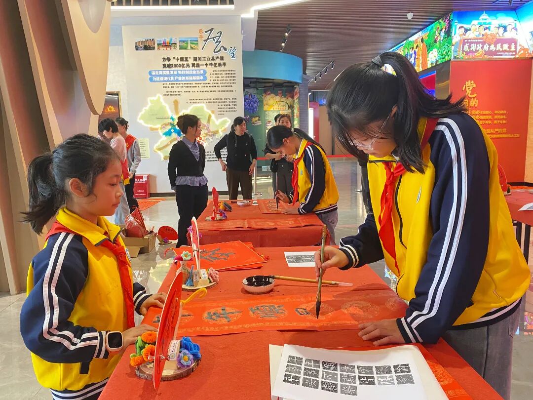 乐平镇南边小学、范湖小学在活动现场开展写春联、送春联活动