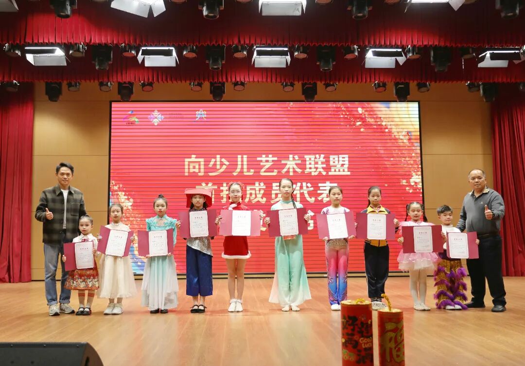 活动以佛山市古筝学会、三水高新区第一小学、南边小学联合带来的古筝合奏《迎春市集》拉开序幕,悠扬琴声营造出喜庆祥和的氛围。随后,在全体嘉宾与师生的共同见证下,“乐平镇少儿艺术联盟”正式揭牌,标志着该联盟正式投入运行,为镇域美育资源协同搭建了全新载体。