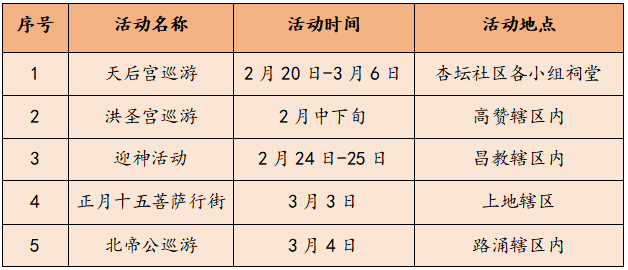 活动地点:杏坛社区、上地村、高赞村、路涌村、昌教村等