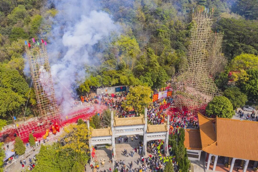 活动简介:观音信俗(观音开库)是广东省非物质文化遗产。每年正月二十五日晚开始,各地善信陆续登龙江锦屏山、龙山金紫峰祈福;正月二十六中午,龙山片各村在金紫峰举办花炮会,晚上各村举办的晚宴超3000围。