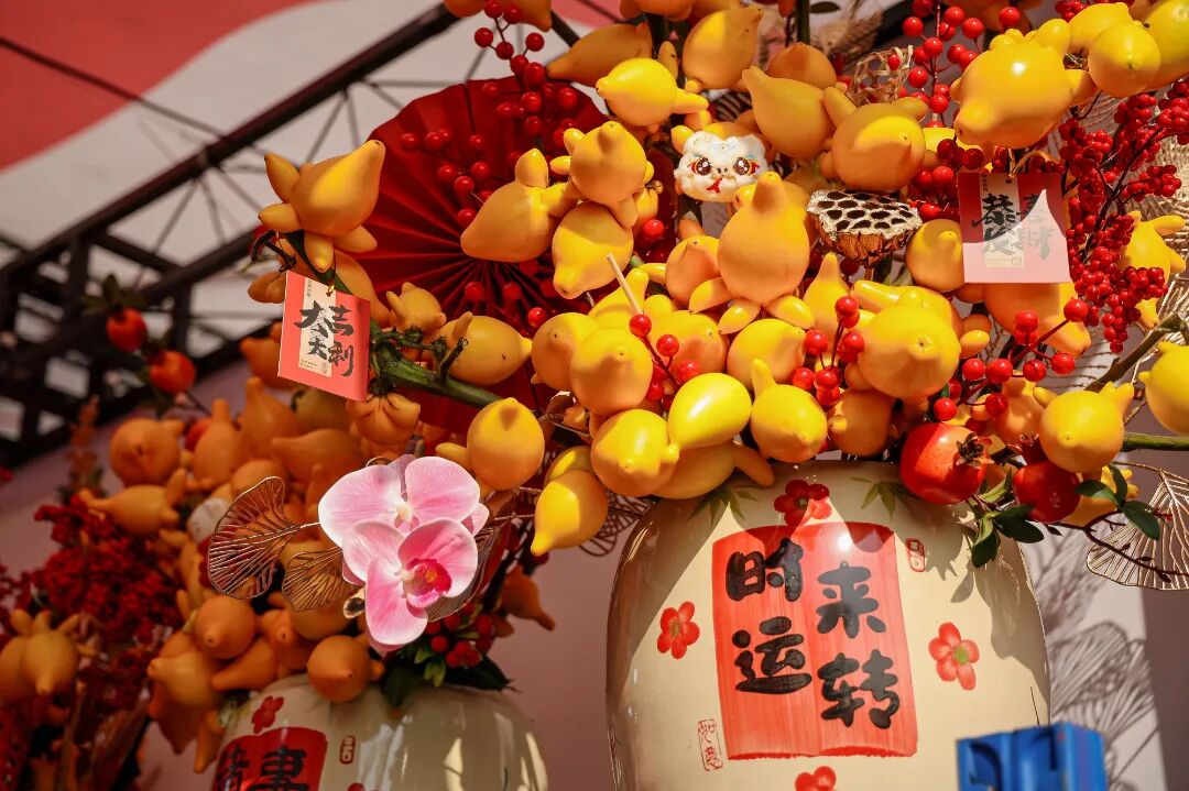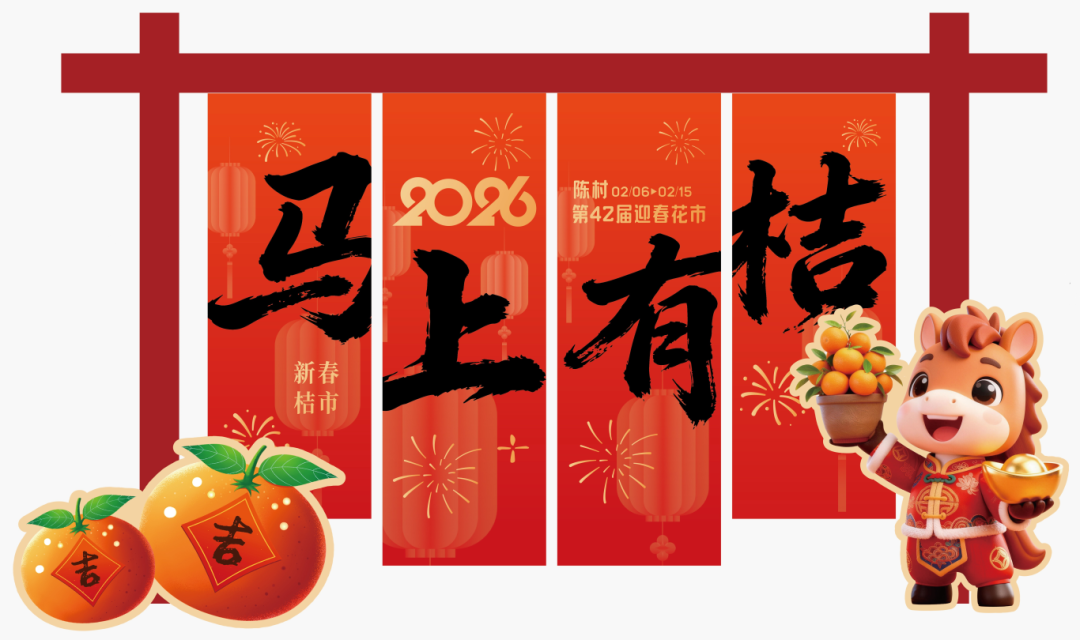由陈村本土IP“陈村年桔”与潮玩公社“摩登财神”联名打造,这位花市吉祥物将化身“福气担当”,在现场等你来偶遇!