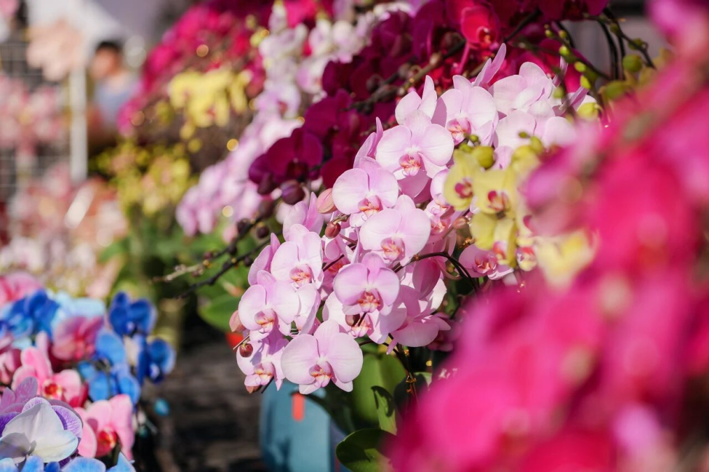 今年花市专为“颜控”升级,芳华大道化身“桔祥大道”,一步一景。