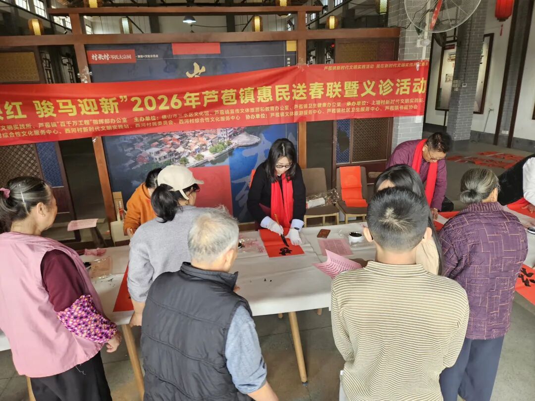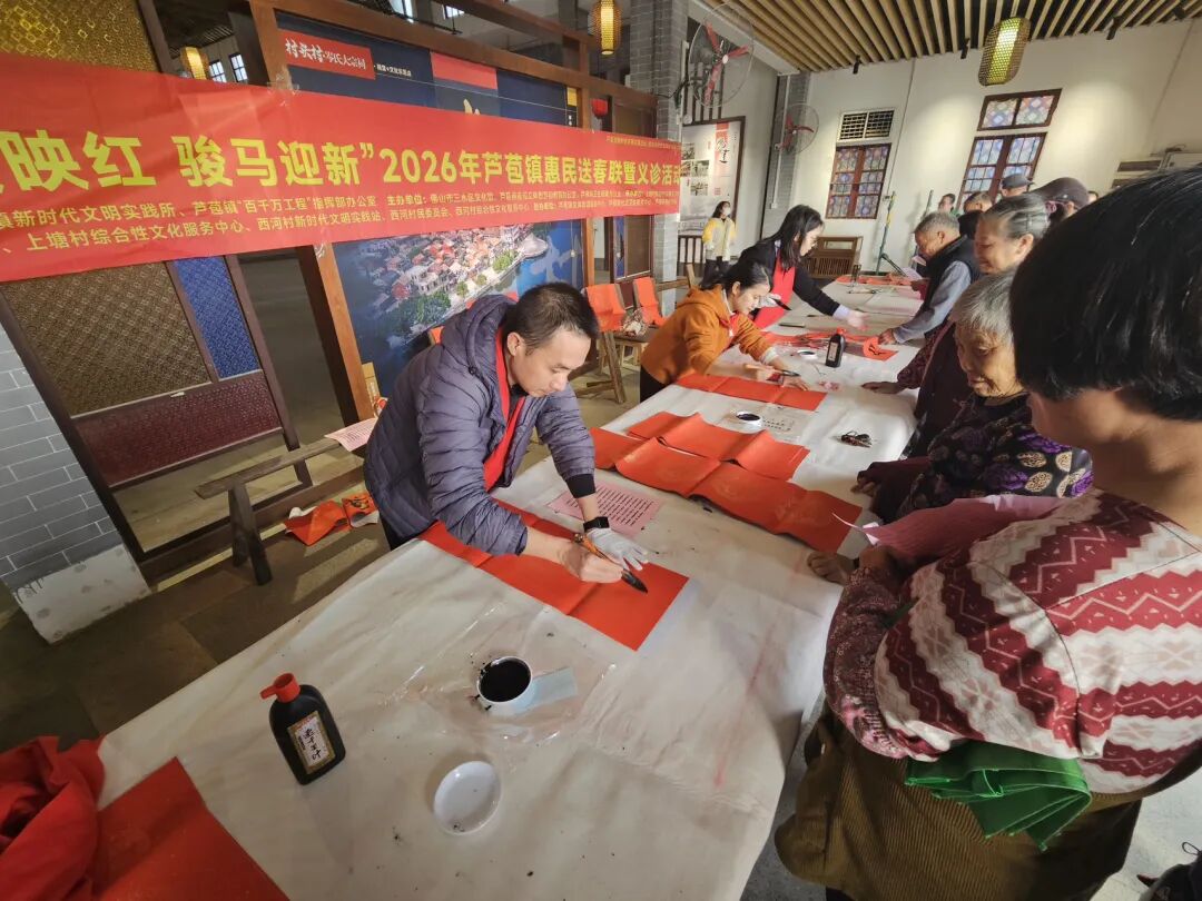 链接辖区书法爱好者现场写赠春联,以本土笔墨传递邻里温情,让每一副春联都承载着芦苞人的新春期盼。