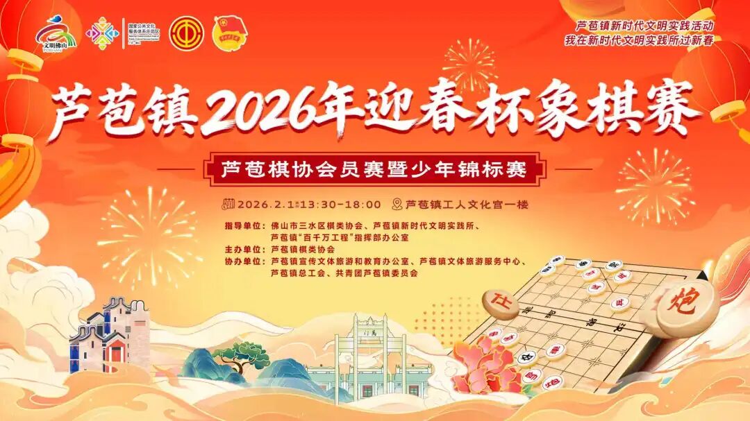 为庆贺2026马年新春,传承中华象棋文化,增进芦苞镇棋友间的情谊,芦苞镇2026年迎春杯象棋赛即将启幕!欢迎广大棋类爱好者到现场观赛,感受这场智慧与风采的对决!