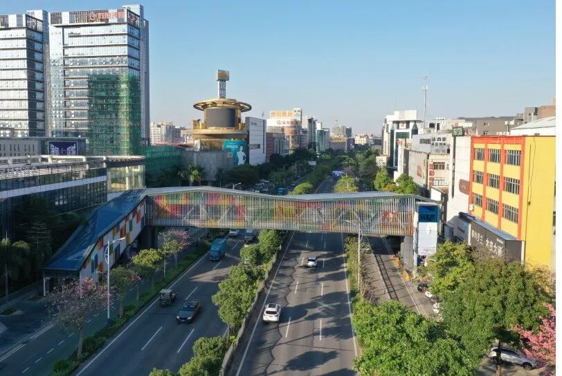龙江追求的不只是“畅通”与“整洁”,更是“美丽”与“品质”,将美学思维和精细功夫融入城市建设的每个细节。倾力打造龙江展贸大道这条美丽示范主街:改造提升人行天桥、龙江客运站、龙江原创展示中心,建设亚洲材料交易中心门楼、龙江展贸之门等地标。更发动沿线20多家企业积极参与,合计投入900多万元,累计完成40宗建筑物外立面改造。如今,展贸大道已焕然一新,成为展示龙江产业实力与城市形象的亮丽窗口。