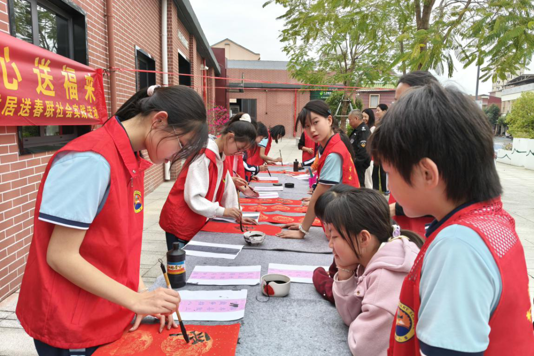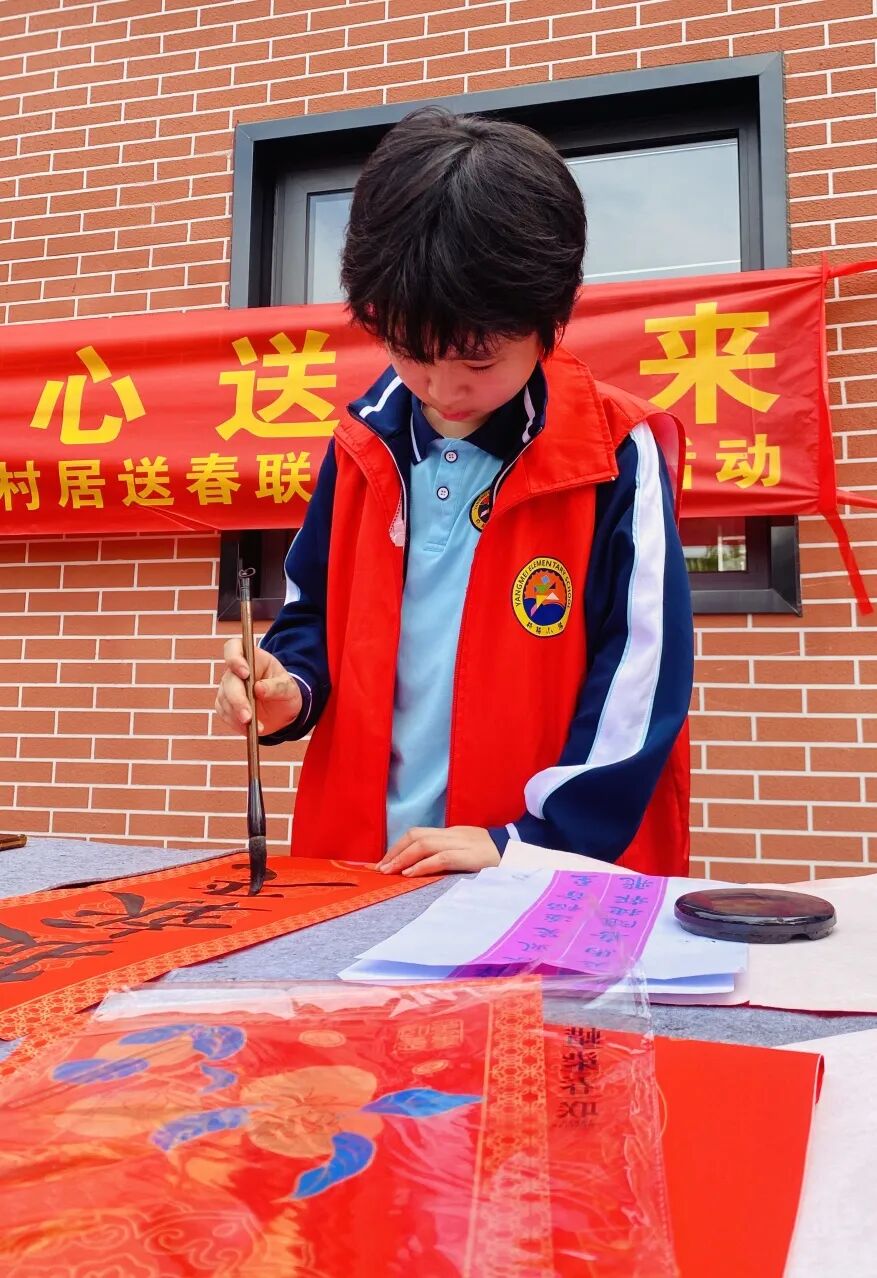 年味暖社区!杨梅小学师生挥毫送福