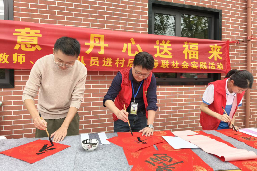 活动现场墨香四溢,暖意融融。书法社团的同学们在党员教师的指导下,铺纸研墨,挥毫书写,一幅幅充满祝福的春联和“福”字跃然纸上。红纸黑字,笔走龙蛇,不仅展现了同学们扎实的书法功底,更传递出对新春佳节的美好祝愿。