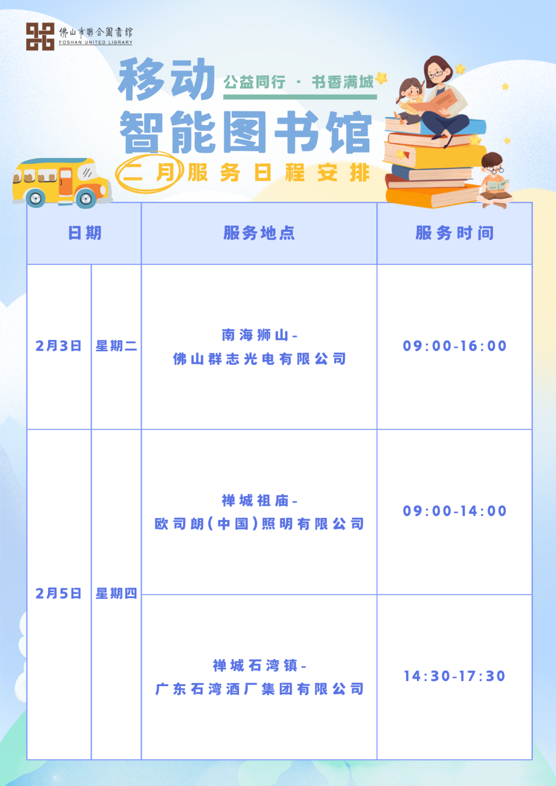 亲爱的读者朋友们,2026年1月移动智能图书馆服务日程新鲜出炉啦!这个冬天,让我们继续相约,将精彩图书、智能服务和暖心陪伴,送到您的身边。