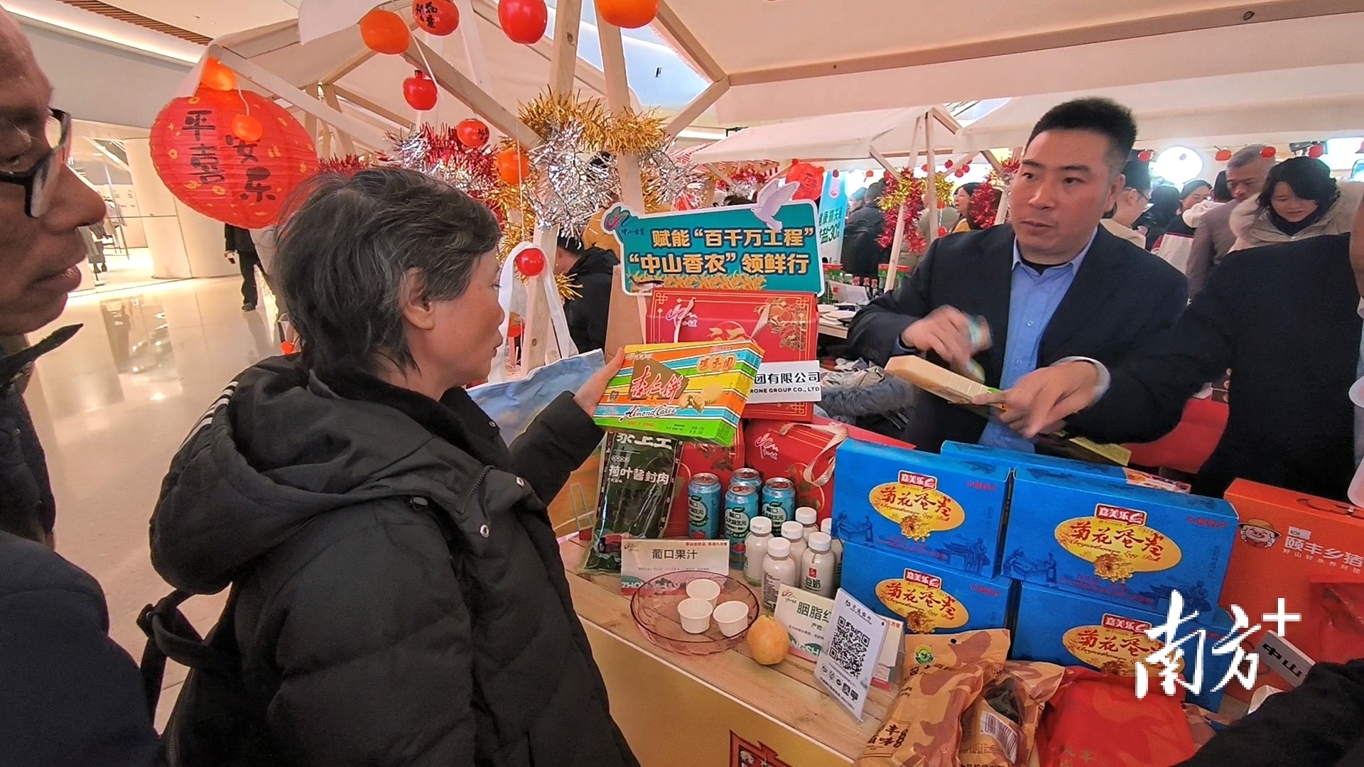 1月31日,位于上海瑞虹新天地太阳宫的“广货行天下·中山百货进上海”活动现场,中山兴中集团有限公司农投项目工作人员朱文浩站在“中山香农”摊位前,嗓音已经有些沙哑,手里的最后一盒杏仁饼成了全场焦点。就在他眼前,来自广州的一家三口和几位驻足良久的上海顾客,目光都落在那印着旧式花纹的纸盒上。
