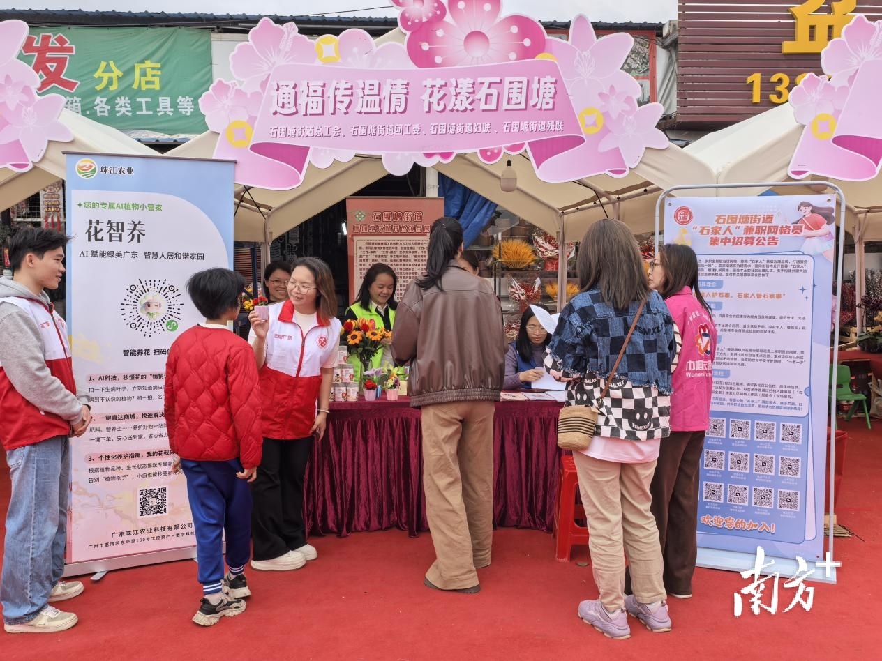石围塘街道爱心义卖巾帼队伍、网格及青年志愿服务队伍同步开展活动,既助力文化宣传、引导文明观展,又以义卖所得帮扶困难群体,同时依托乡村振兴协作优势,携手珠江农业推出“花智养”家庭园艺AI小助手,为市民提供个性化养花指导,实现公益惠民与科技赋能的双向奔赴。