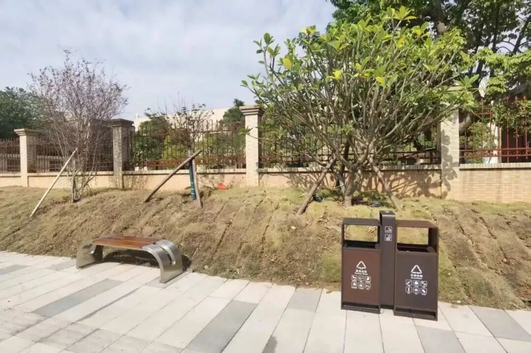 中油大道新设置的休闲凳与果皮箱,以其简洁美观的设计与街道环境相融合,成为一道温馨的风景线