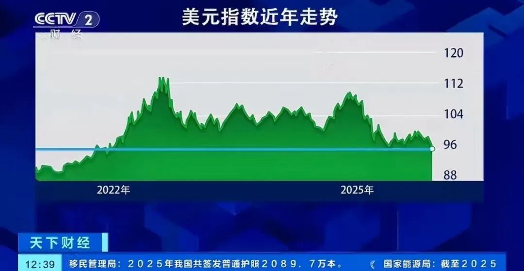去年年初特朗普上任以来,美元就开始一路下跌,美元指数从110下跌到95左右,一年之内下跌超过13%,尤其是近期更是加速下跌,创下4年来的新低。最近,特朗普被问到美元是否过度贬值,特朗普的回应是美元的价值“很好(Great)”。特朗普的表态,被外界视为美国仍在持续追求弱势美元,成为黄金近期暴涨的催化剂。