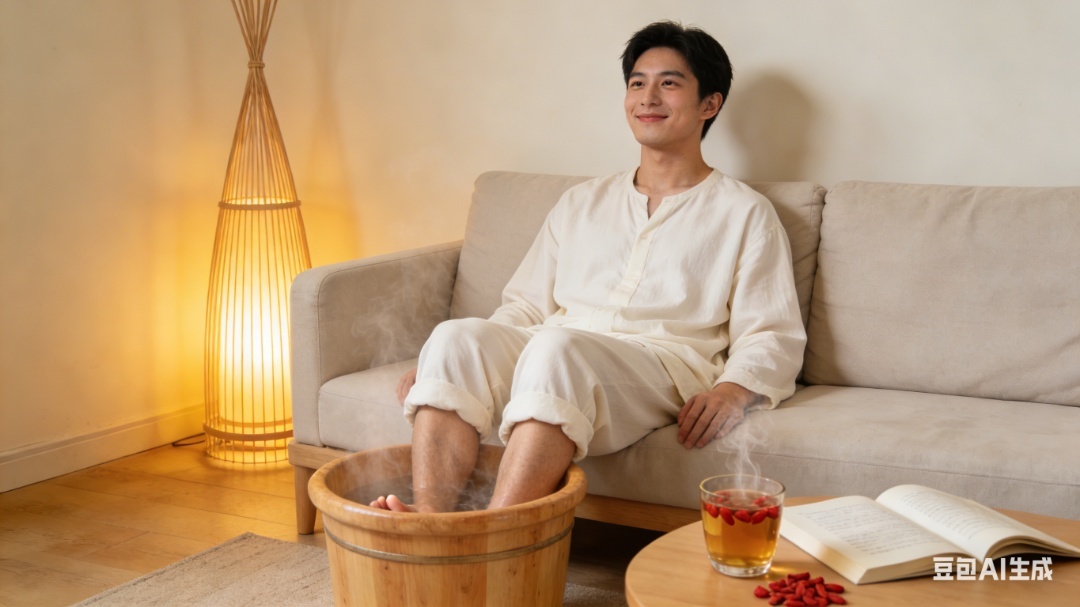 4. 脚暖:穿一双保暖合脚的鞋袜,晚上用艾叶20克+肉桂10克煮水,晾到40℃左右泡脚半小时;睡眠不好的人,泡脚后左右交替按揉涌泉穴各50次,助眠效果更好;