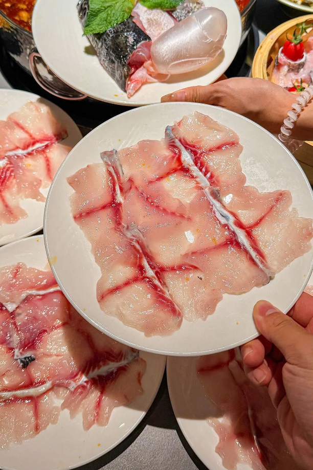 鱼头每日新鲜到店,下锅前依然保持鲜活光泽。沸腾后的锅底将麻辣醇厚的滋味全部煨入到鱼头里,每一口都肥美厚实。