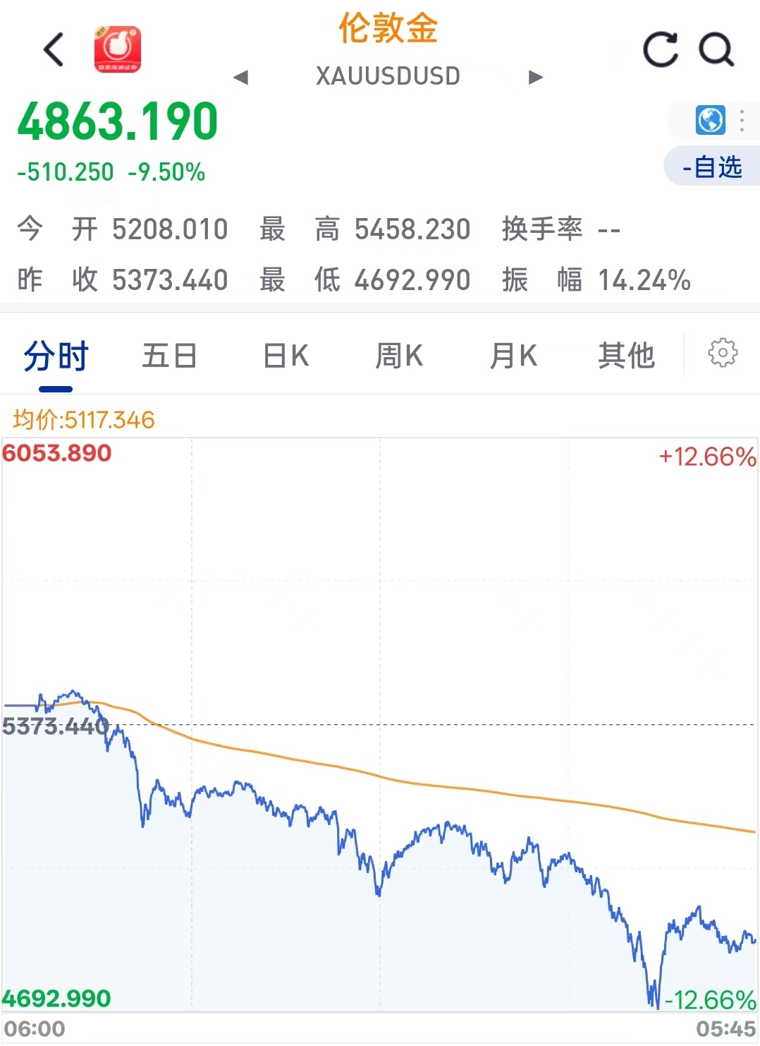 暴跌并未就此止步。1月31日,市场恐慌情绪延续,现货黄金盘中最大跌幅一度扩至12%,最低下探至4682美元;现货白银更是创下历史最大日内跌幅,一度跌超36%。截至2月1日发稿时,市场仍处于剧烈震荡与消化之中,如伦敦金最高峰与大跌的低点算,伦敦高金较峰值已回落逾16.16%。