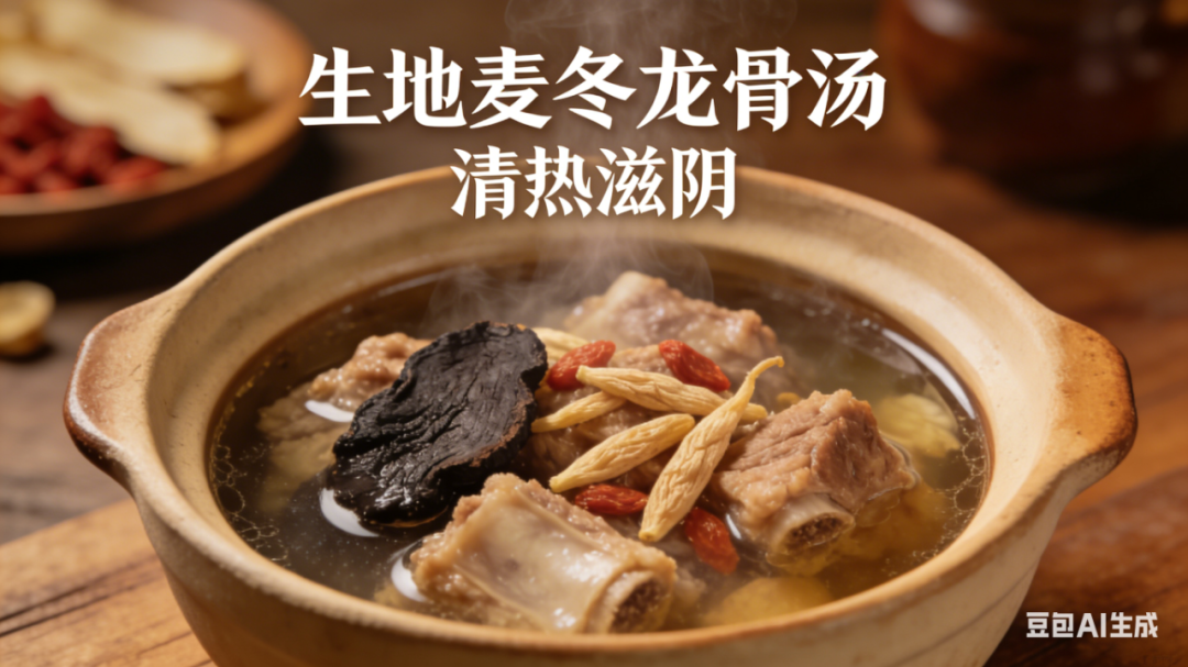 材料:猪龙骨(或排骨)500克,生地黄20克,麦冬15克,玉竹10克,陈皮1片。