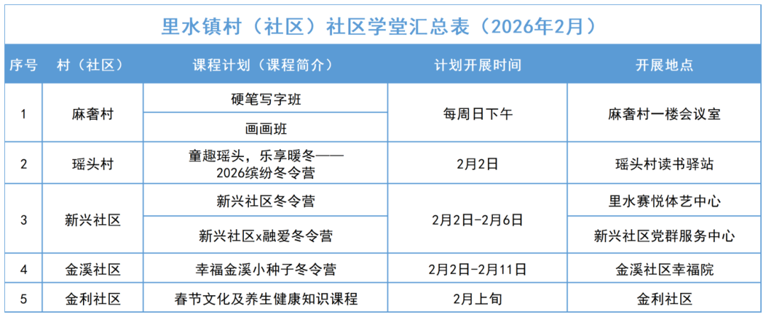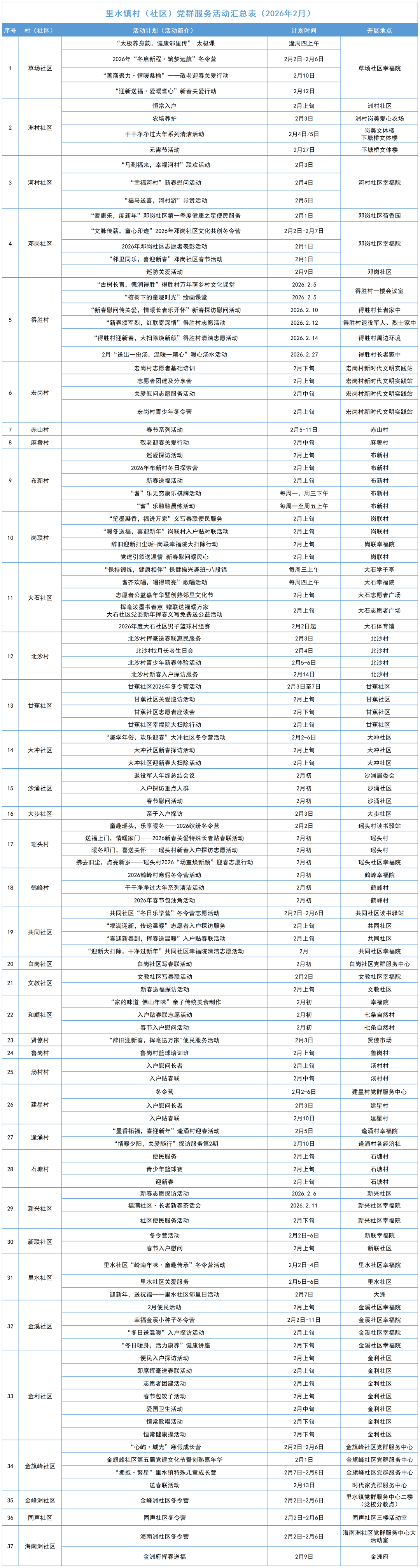 2月里水镇各村(社区)
