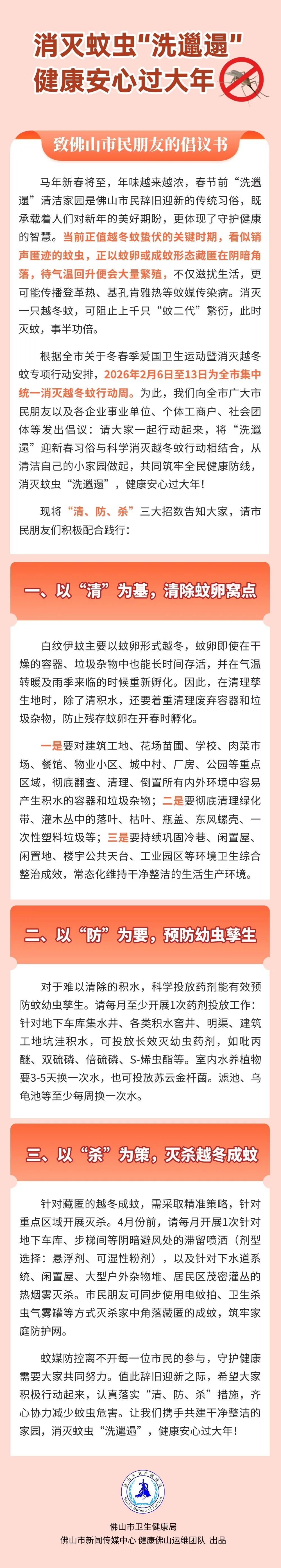 消灭蚊虫“洗邋遢” 健康安心过大年——致佛山市民朋友的倡议书