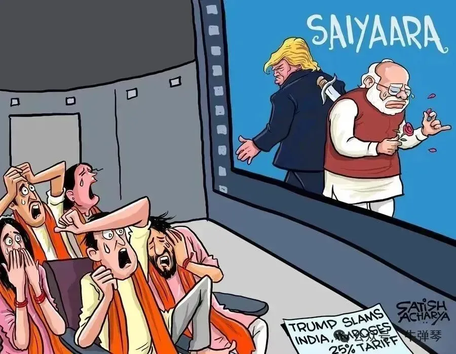 确实,以前两人见面,又是牵手又是拥抱;哪知道秀恩爱死得快,去年又上台的特朗普,一把对印度加征关税50%,全世界最高。