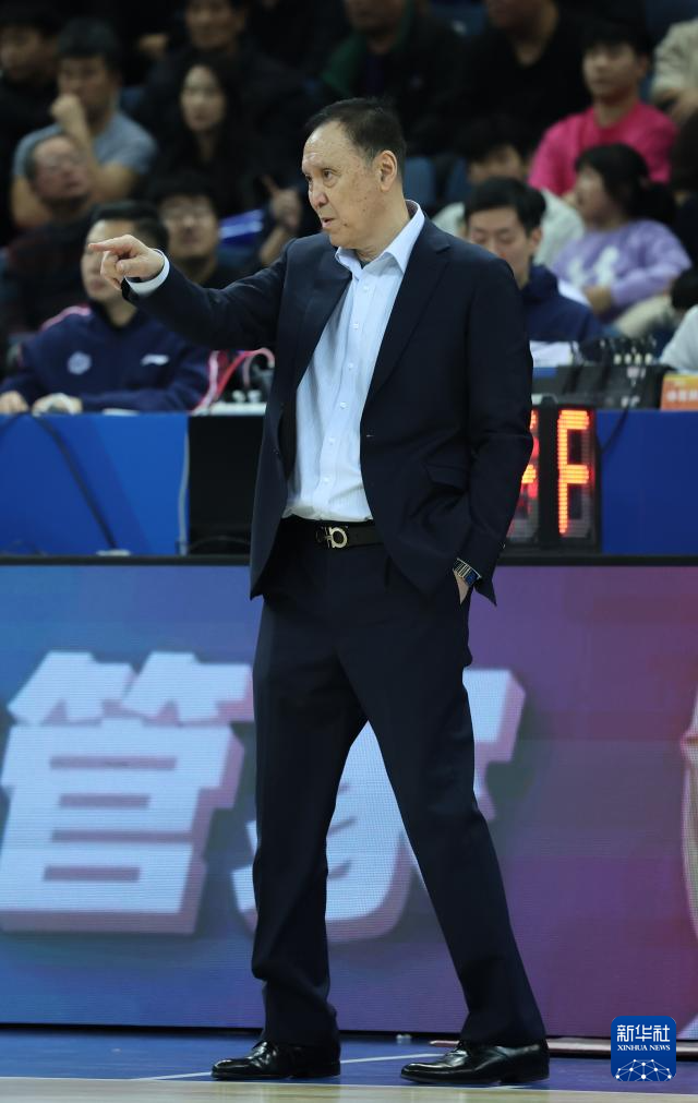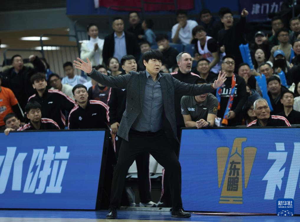 2月2日,山东高速队主教练邱彪(中)在场边指挥。