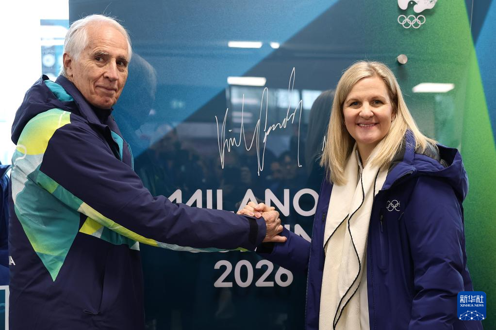 2月2日,国际奥委会主席考文垂(右)、米兰-科尔蒂纳冬奥会组委会主席乔瓦尼·马拉戈在揭幕活动现场合影。