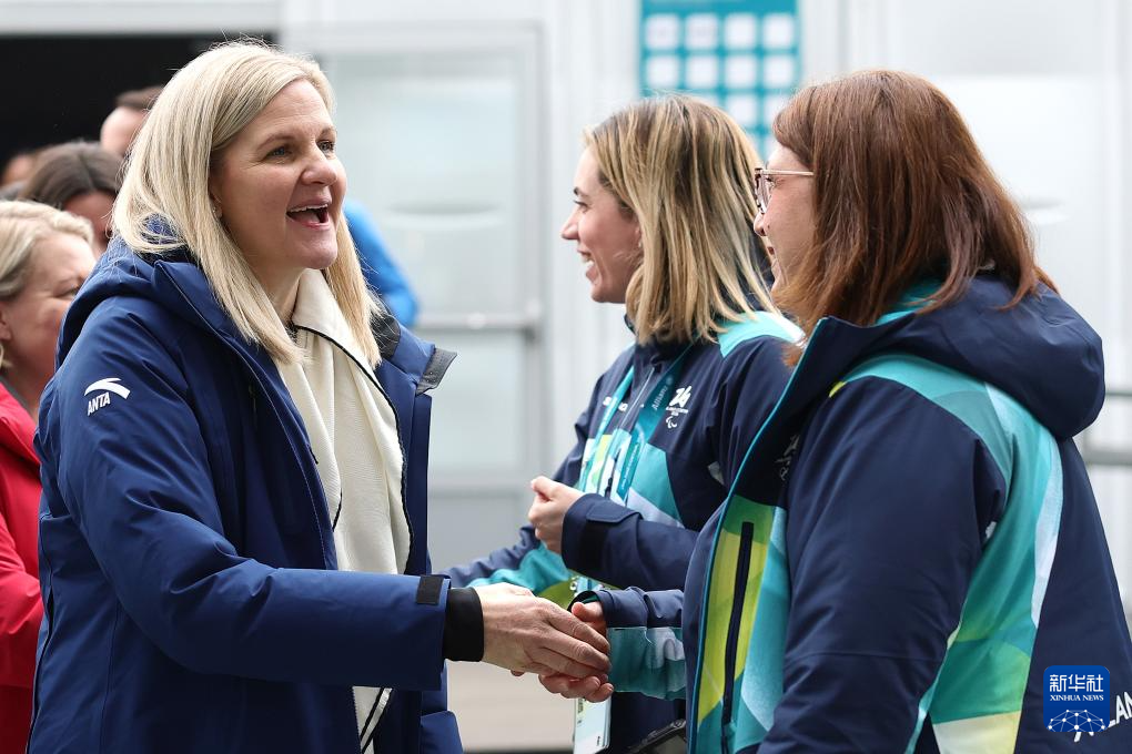 2月2日,国际奥委会主席考文垂(左)在揭幕活动现场和运动员交流。