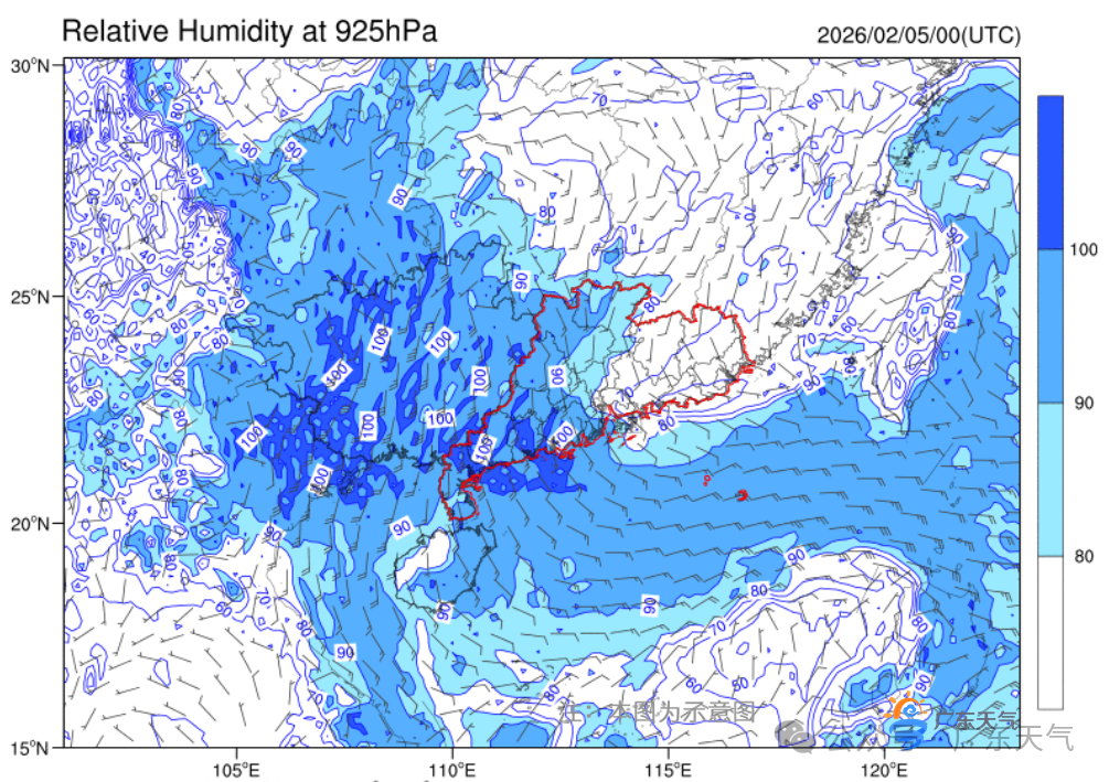 广东省气象台预计,2月4-6日,随着地面冷高压减弱东移,广东转受高压后部偏南气流影响,云量增多,气温逐步回升,早晚有轻雾或雾。其中,4日夜间-5日,中低层偏南急流加强,湿度增大,西部市县局部有小雨。