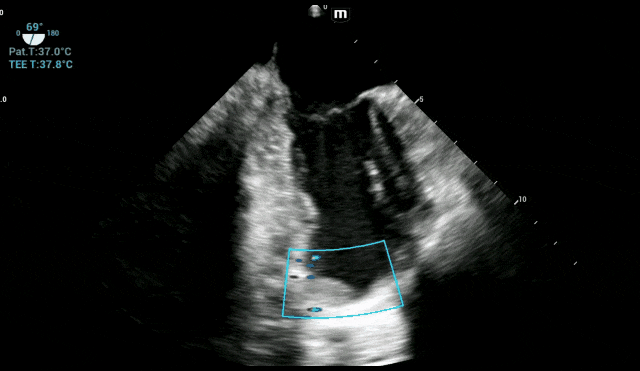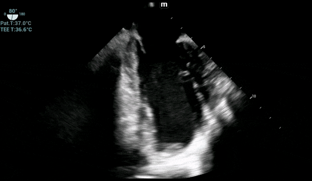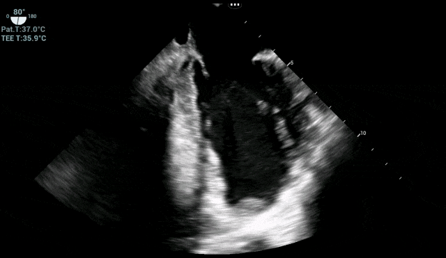 手术关键操作期:TEE始终锁定左心室,确认血栓无任何移位或脱落迹象,为外科医生创造了安心操作的环境。