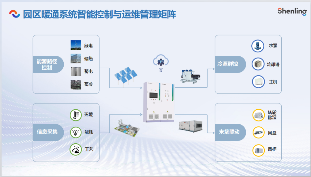 其中,由申菱IOT事业部自主研发的高效节能控制系统,采用全局实时寻优、风水联动等控制策略,可应用于医药电子、大型交通枢纽、数据中心等不同行业的暖通机房群控、末端节能自控、水蓄冷控制等场景,实现最优节能运行。