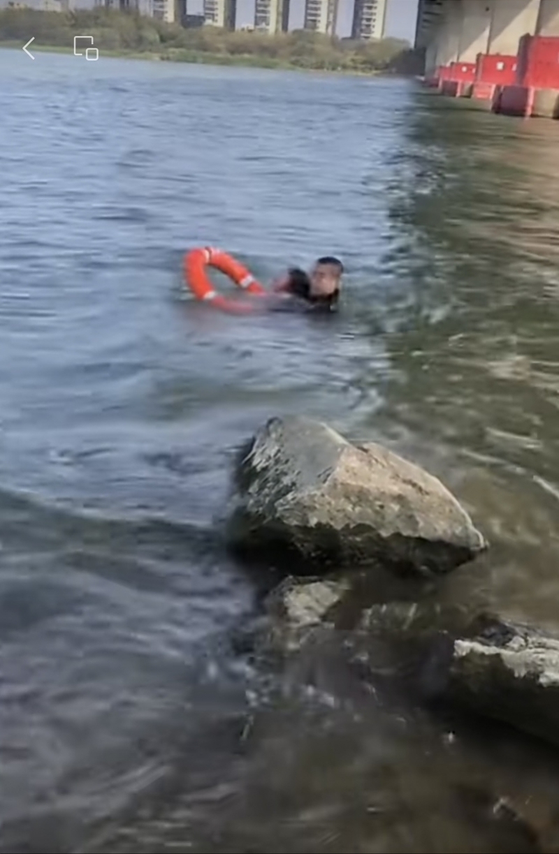 来不及多想,洪湘楷立即脱下鞋袜,赤脚步入寒冷的江水中,“我本来还想把衣服脱掉,看她快不行了,赶紧下水去”。洪湘楷左手抓着救生圈,借着浮力来到女孩跟前,揽着她向岸边走去,江水已漫至其胸口位置,锋利的礁石踩上去阵阵疼痛,“她看上去20多岁,被水呛得很厉害”。
