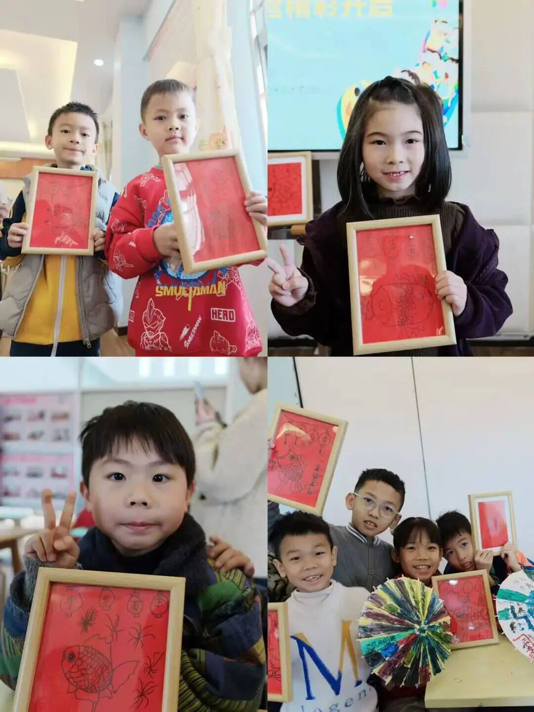 经过孩子们的精心创作,一幅幅充满童趣的画作相继完成。孩子们兴奋地展示自己的作品,分享创作思路,脸上洋溢着自豪与幸福的笑容。