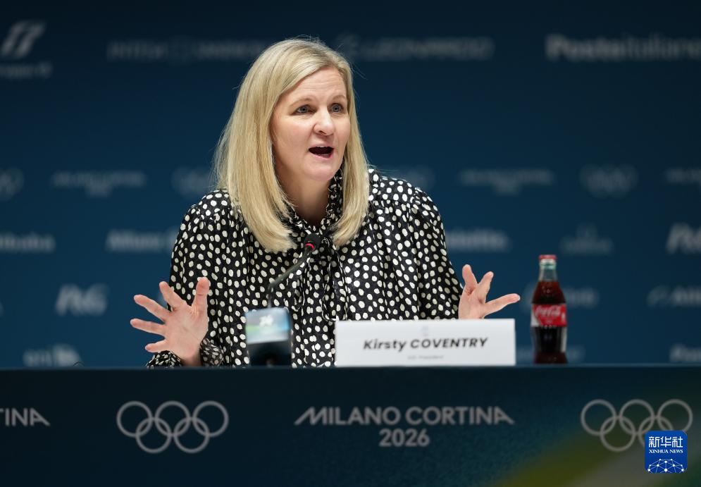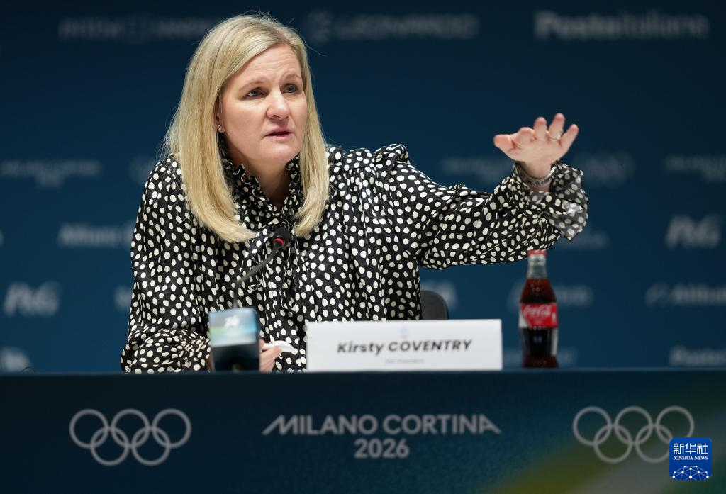2月4日,国际奥委会主席考文垂在发布会上回答记者提问。