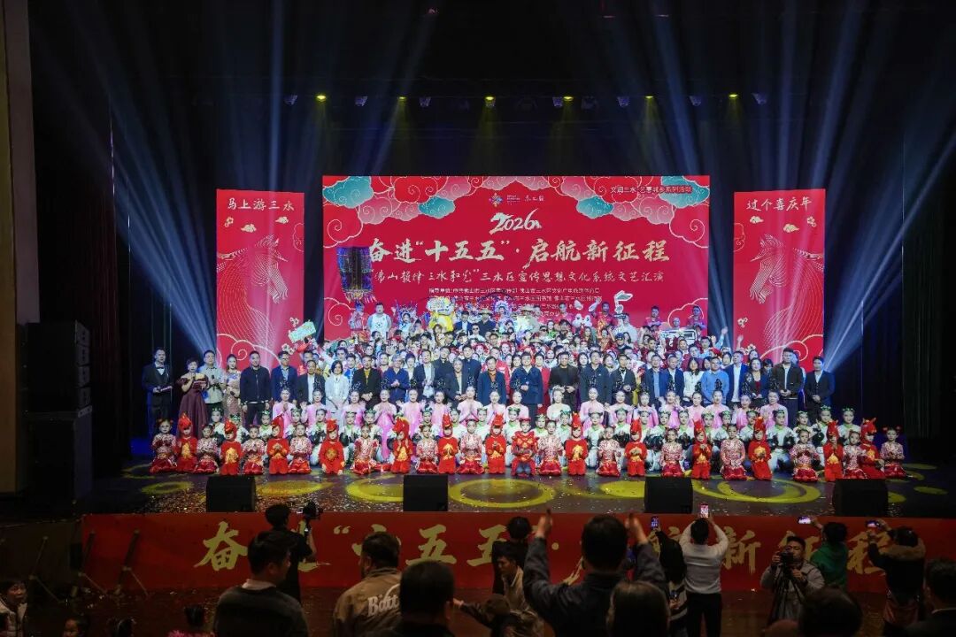 2月4日,“奋进‘十五五’・启航新征程”——三水区宣传思想文化系统文艺汇演在三水文化中心举行。本次活动作为“佛山韵律・三水和光”系列展演的收官之作,汇聚了全区宣传文化战线的丰硕成果与昂扬风采,为“十五五”开局注入强劲文化动能。