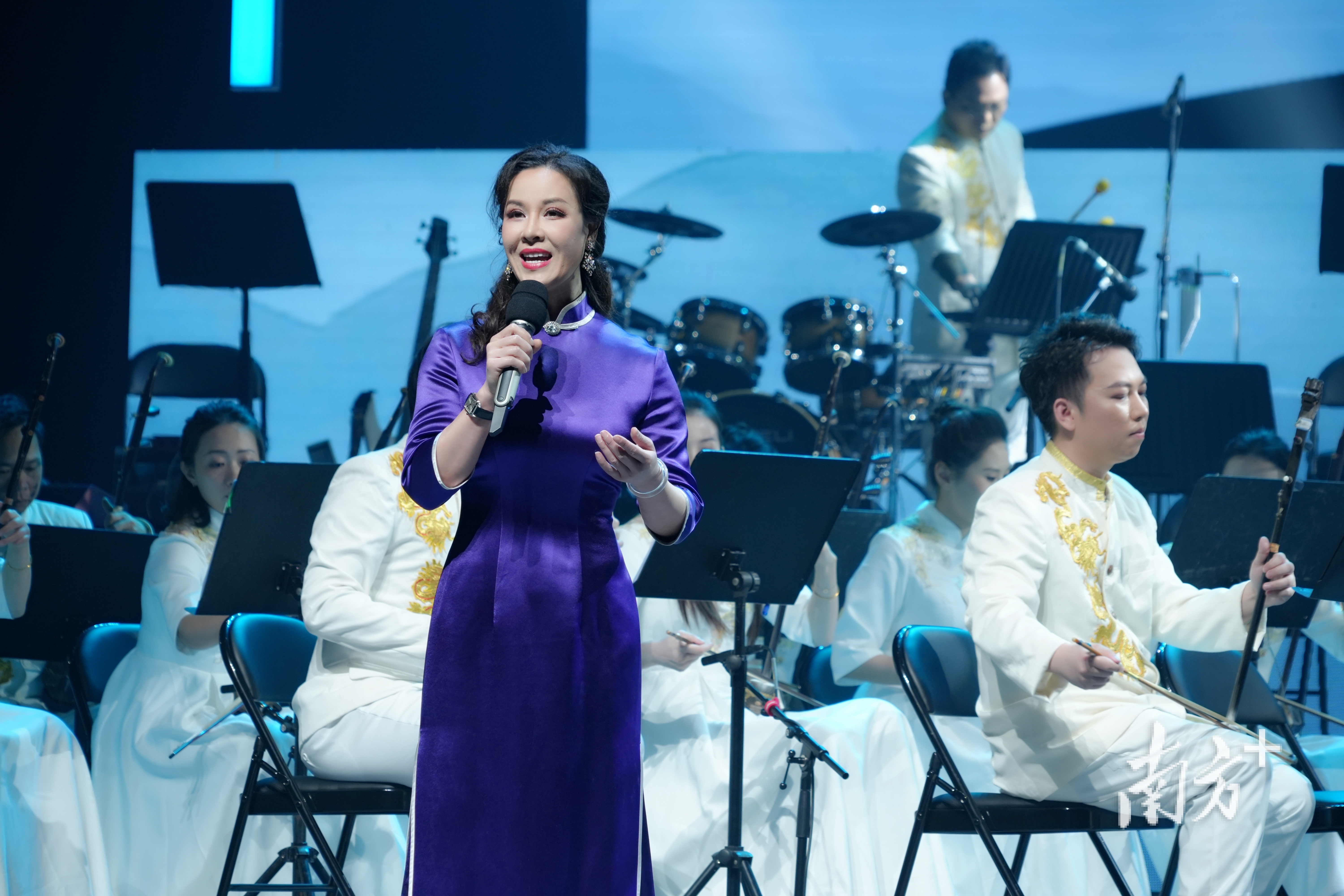 为实现这一恢弘的音乐史叙述,广州粤剧院集结了强大的演出阵容。乐队方面,不仅包含高胡、扬琴、锣鼓等传统粤剧“棚面”精华,更配备了完整的中西混合编制,包括笙、萨克斯、大提琴等,以丰富的音色语汇对应不同历史时期的音响特质。