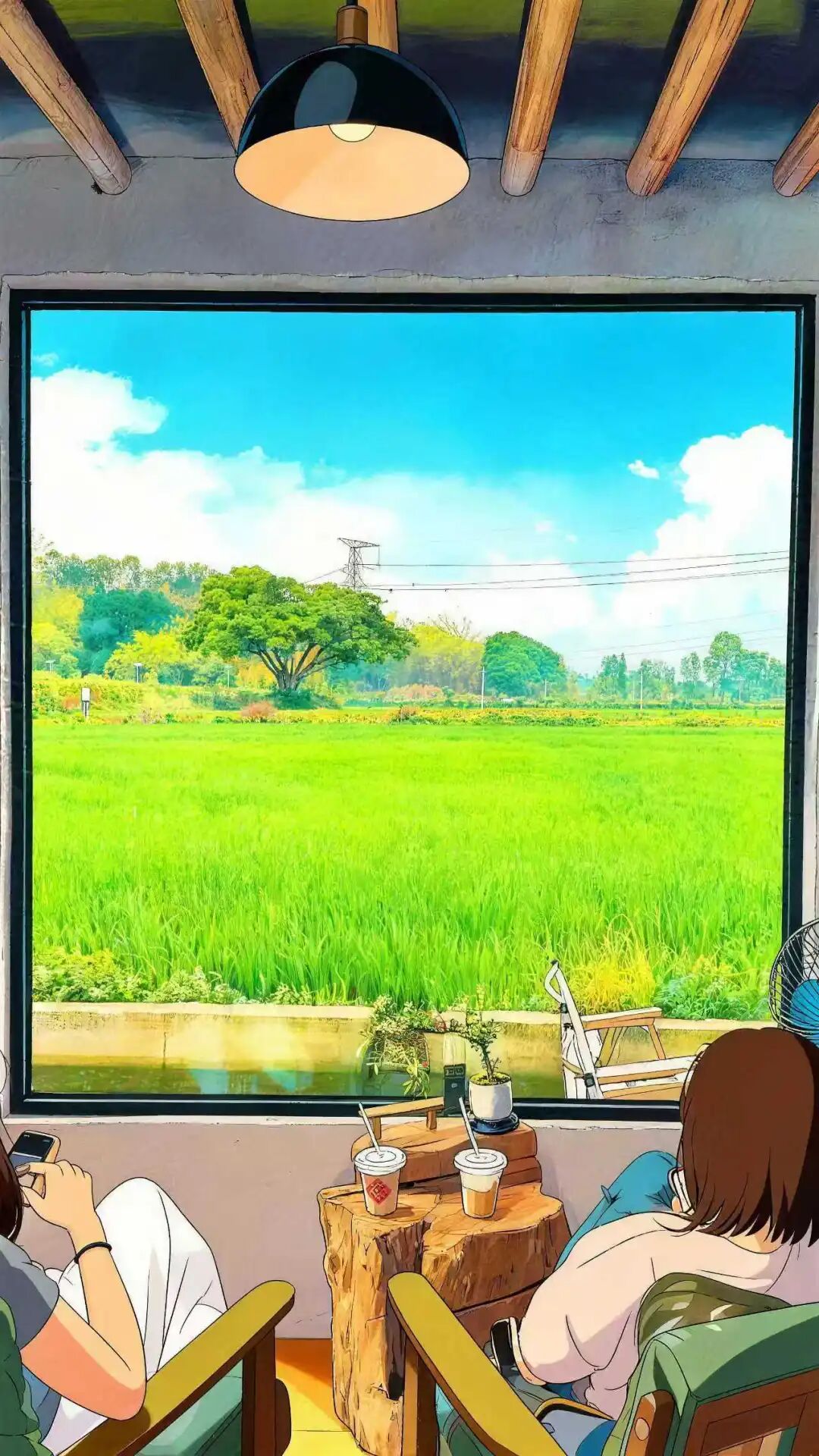 线索3:点缀在无垠稻浪中的咖啡小馆,用一整面落地窗为画框,正以木梁与暖光,延伸着田野的诗意。