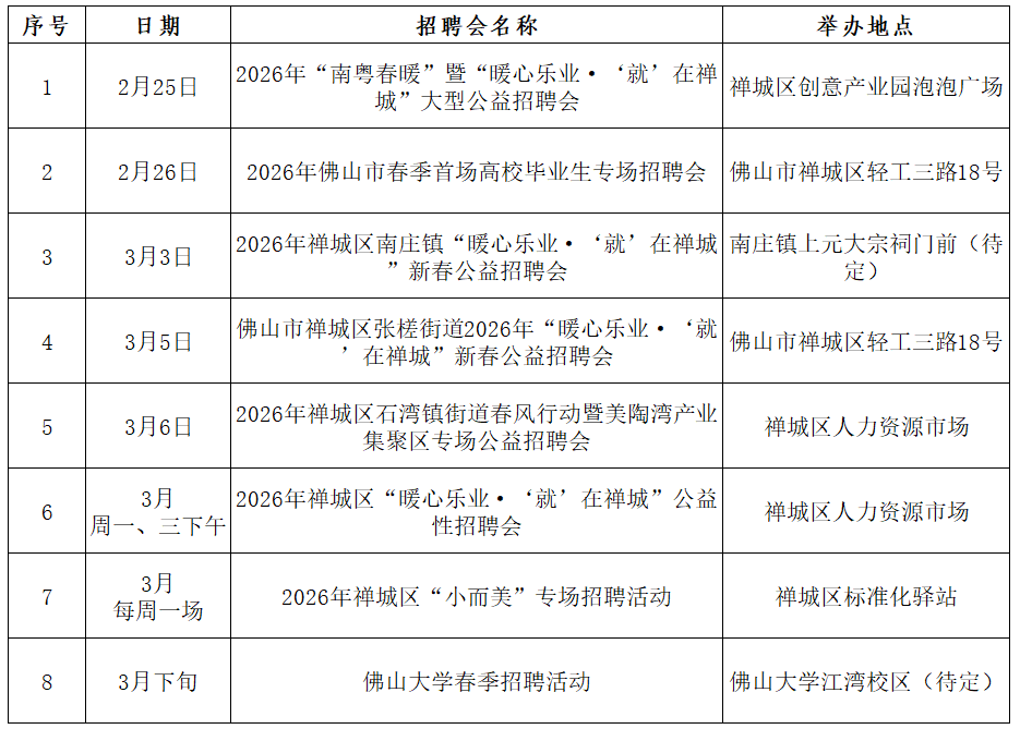 @禅城企业与求职者 2026年第一季度招聘计划请查收,共创开门红