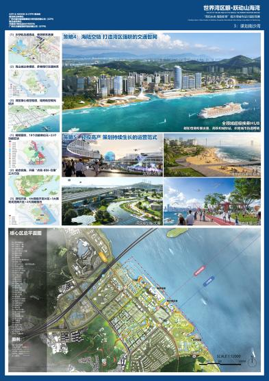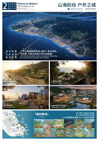 设计方案介绍:方案以“世界湾区眼跃动山海湾”为愿景定位,提出5大方面设计策略,旨在充分发挥南沙湾“山-海-港-城-产”资源,将南沙湾打造为盘活内湾要素联动的交汇中心。