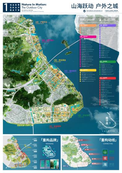 在品牌塑造层面:方案结合南沙湾的核心资源与政策契机,提出“户外型城市”的品牌核心理念,打造“山海跃动,户外之城”的区域超级IP。