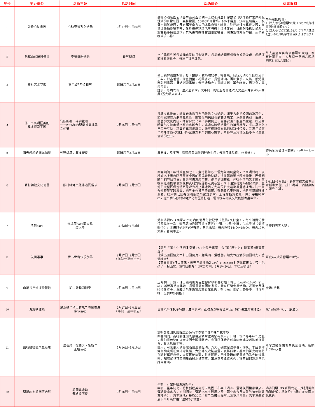 这个春节,高明景区推出多元化体验和特惠活动,满足不同游客需求:
