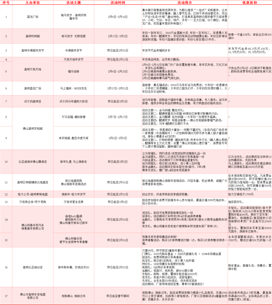 蓝龙广场“驰马贺岁·高明好物嘉年华”(2月6日-16日)设置88个摊位,集中展示销售高明优质年货。详情