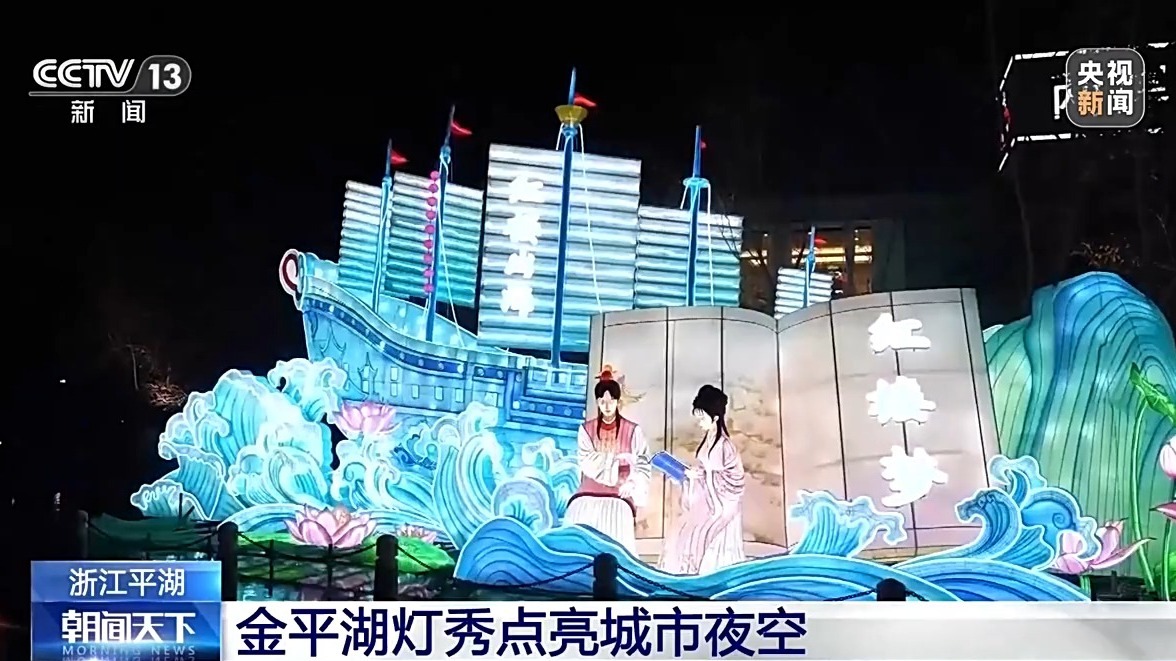 浙江平湖:金平湖灯秀点亮城市夜空