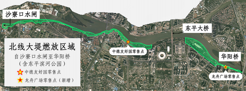 2.北线大堤,自沙寮口水闸至华阳桥(含东平滨河公园)除东平大桥以西765米,以东500米范围外;