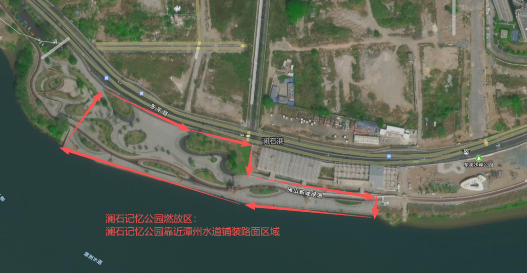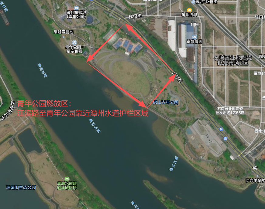 2.石湾镇街道:①青年公园燃放区域;②澜石记忆公园燃放区域;③半月岛湿地公园燃放区域。