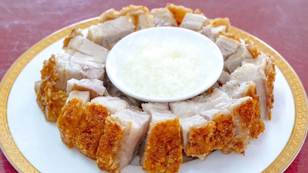 四会地豆镇的烧肉远近闻名,用木炭烧制,皮脆肉嫩,层次清晰。咬下去会发出咔嚓声的芝麻皮,透亮的肥层入口即化,肉软多汁不起渣,甘香而不腻。