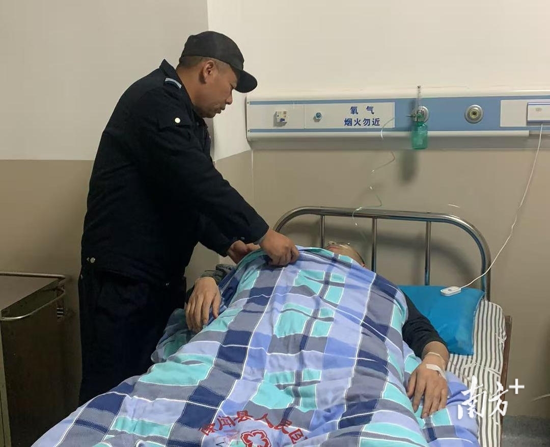 值守人员陈恩彪护送心脏不适旅客到医院就医。