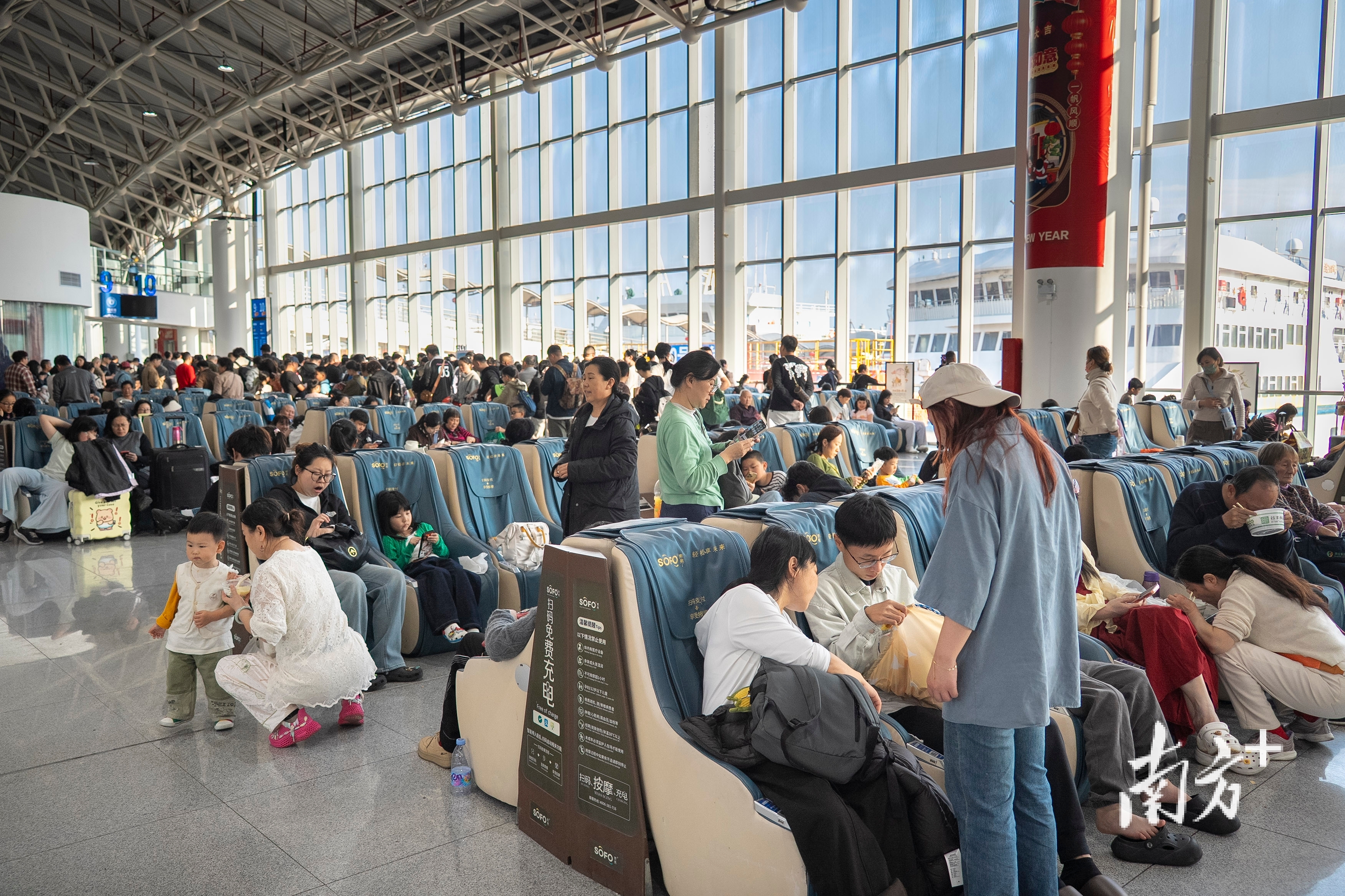 港口大厅坐满了旅客。