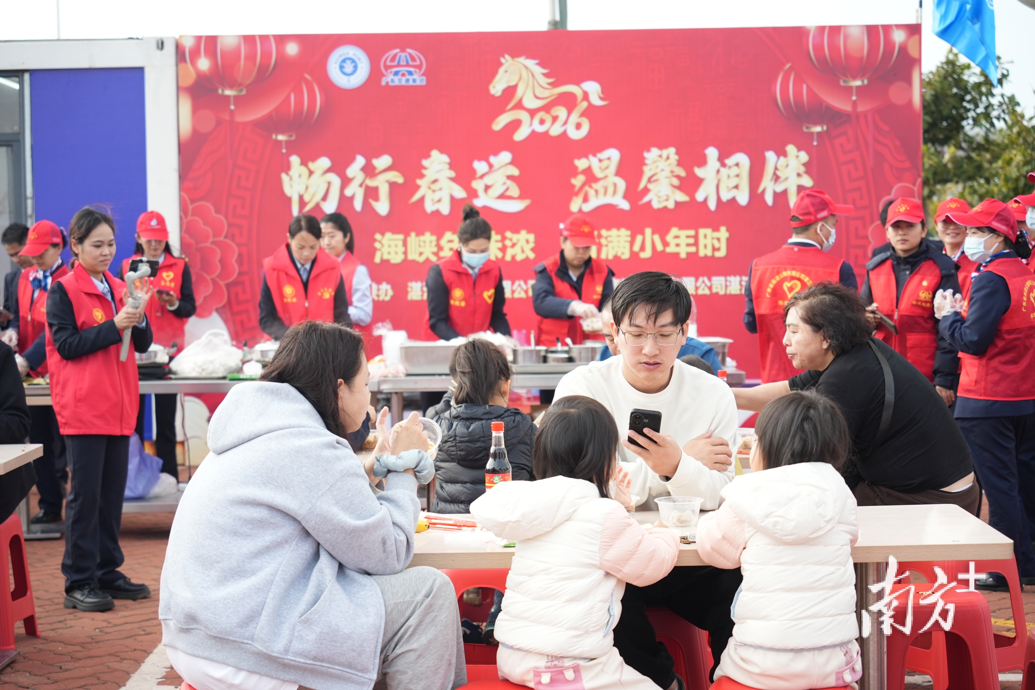 小年,徐闻港工作人员为待渡司机送上饺子和徐闻特色美食。