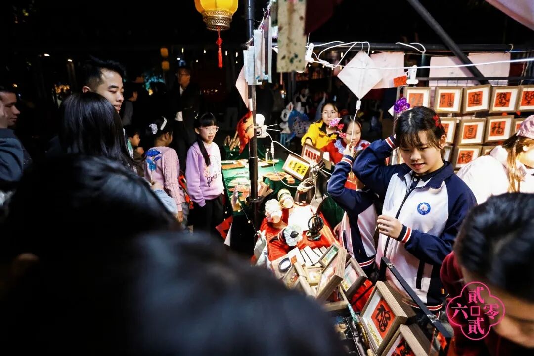 教育领域的深度参与,也成了本届花市的亮点。在国潮展区,各校师生通过写春联、做手工、扎染等传统技艺展示教育成果,校长讲解学生制作的鱼灯,让非遗传承在年轻一代手中焕发新生。这种将课堂延伸至社会的教育实践,不仅展现了教育成果,更在潜移默化中培育着年轻一代的文化认同与乡土情怀。