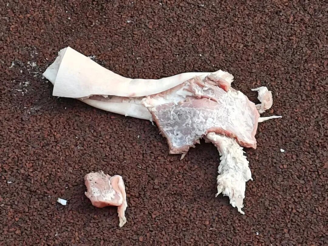 消防员将炸炮与鸡爪、五花肉分别摆放